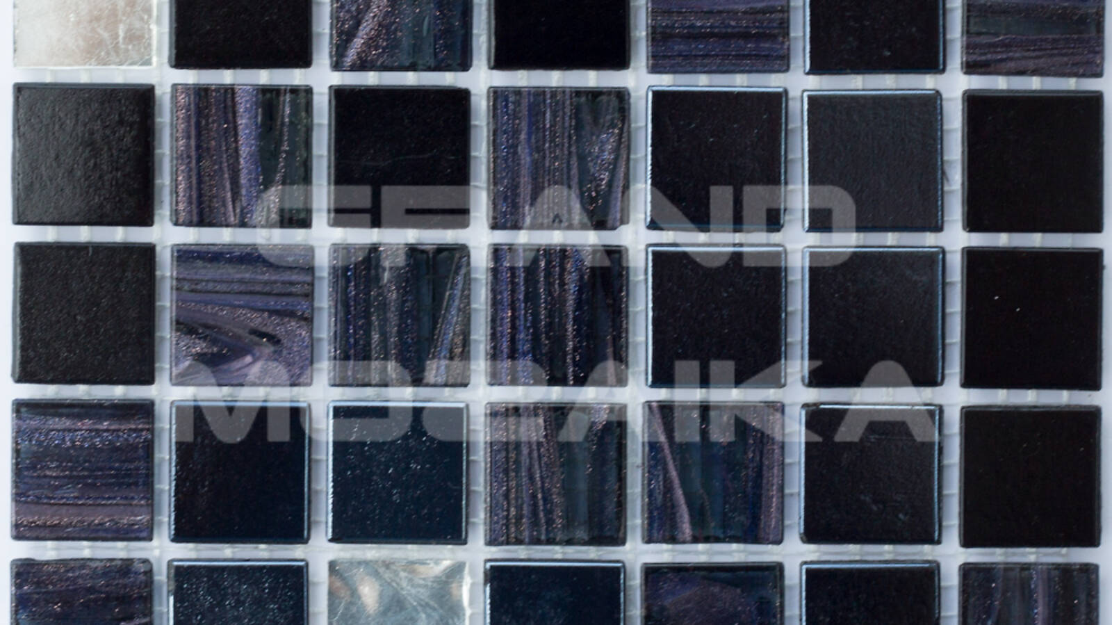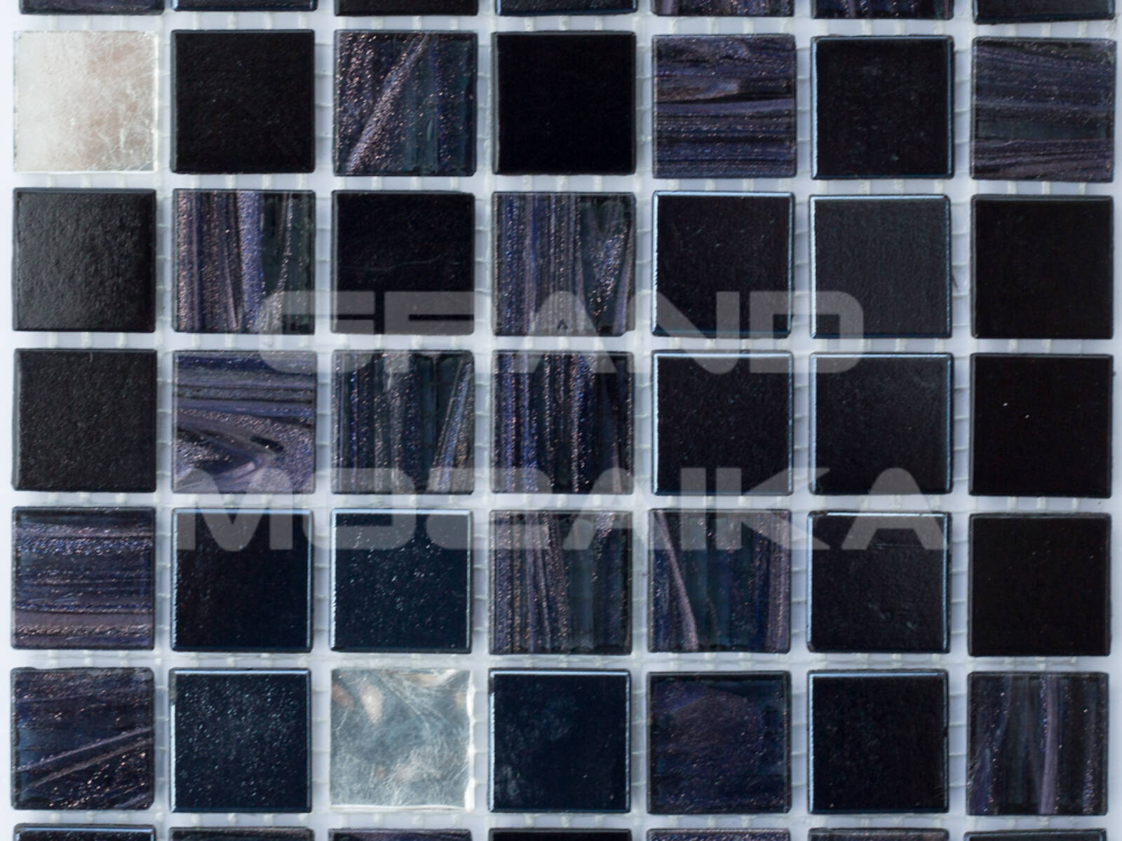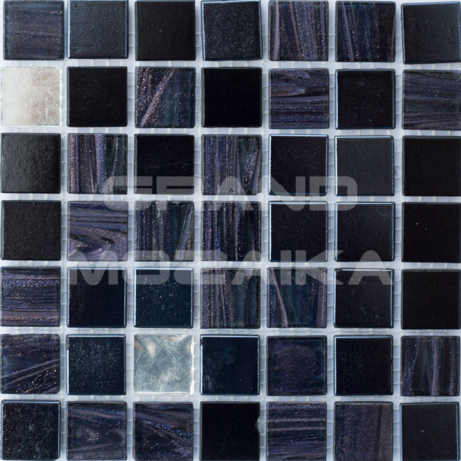 Стеклянная мозаика, серия Mix JNJ, цвет: черный, серебряный, фиолетовый, размер чипа (мм): 20x20